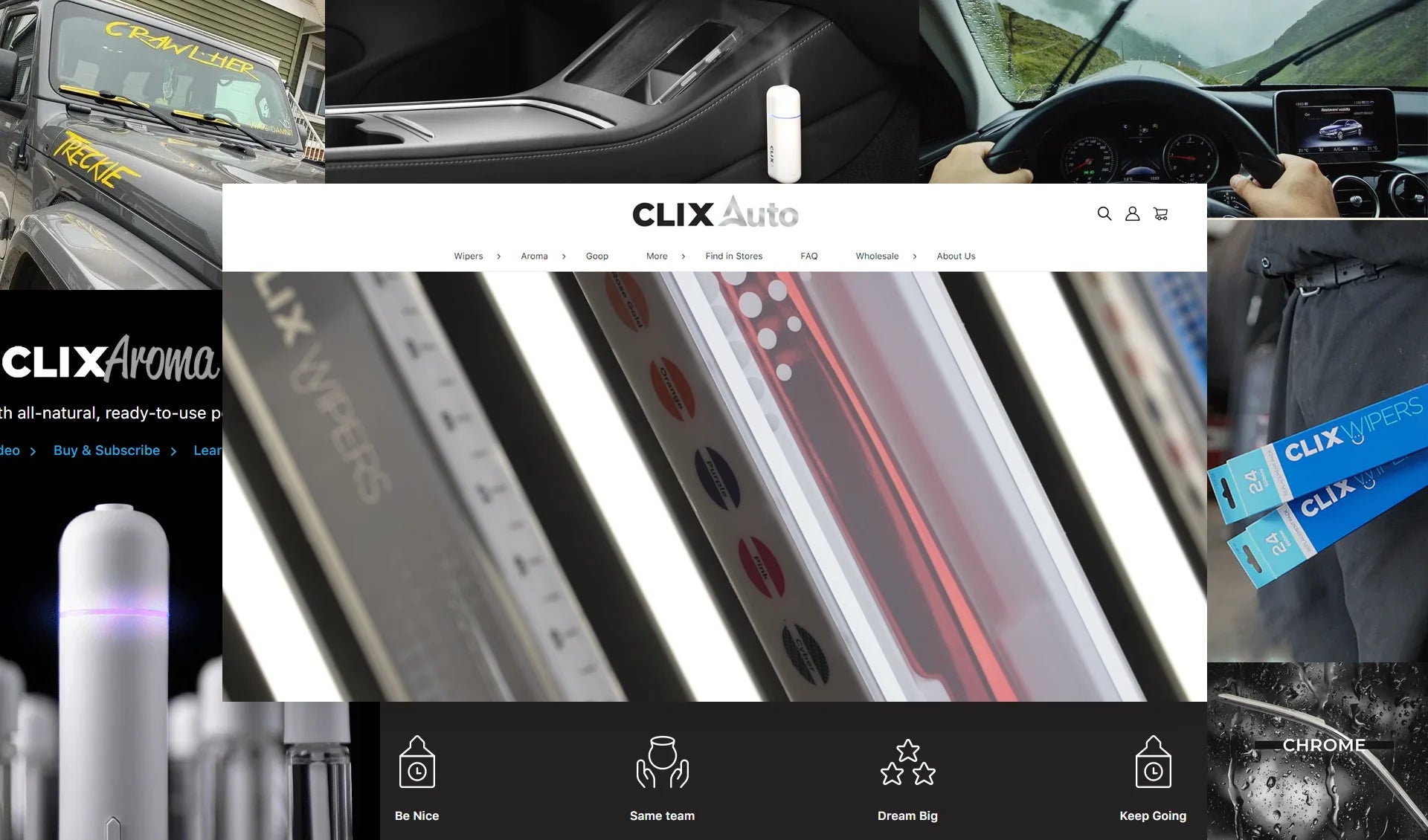 Clix Auto is a car wiper blade company, and we wanted the website to feel alive and interactive but didn't want excessive graphics cluttering the sleek design. Instead, we integrated videos to the home page and other pages to bring it to life.