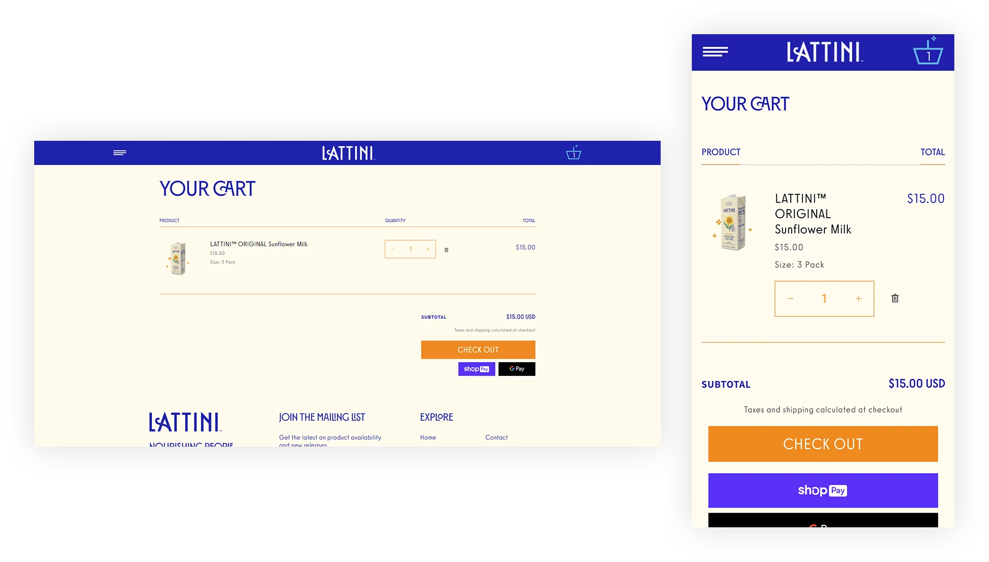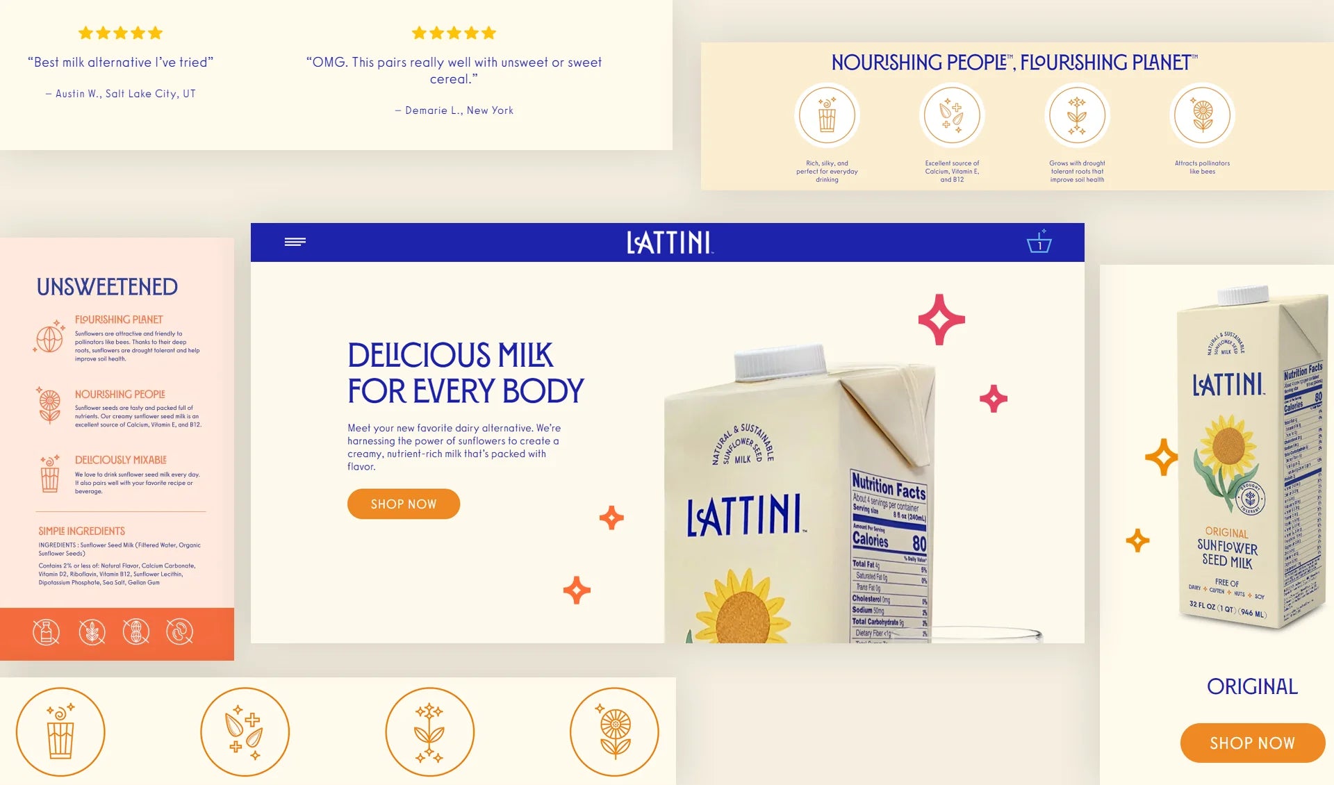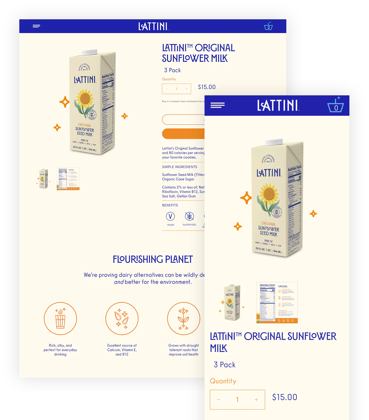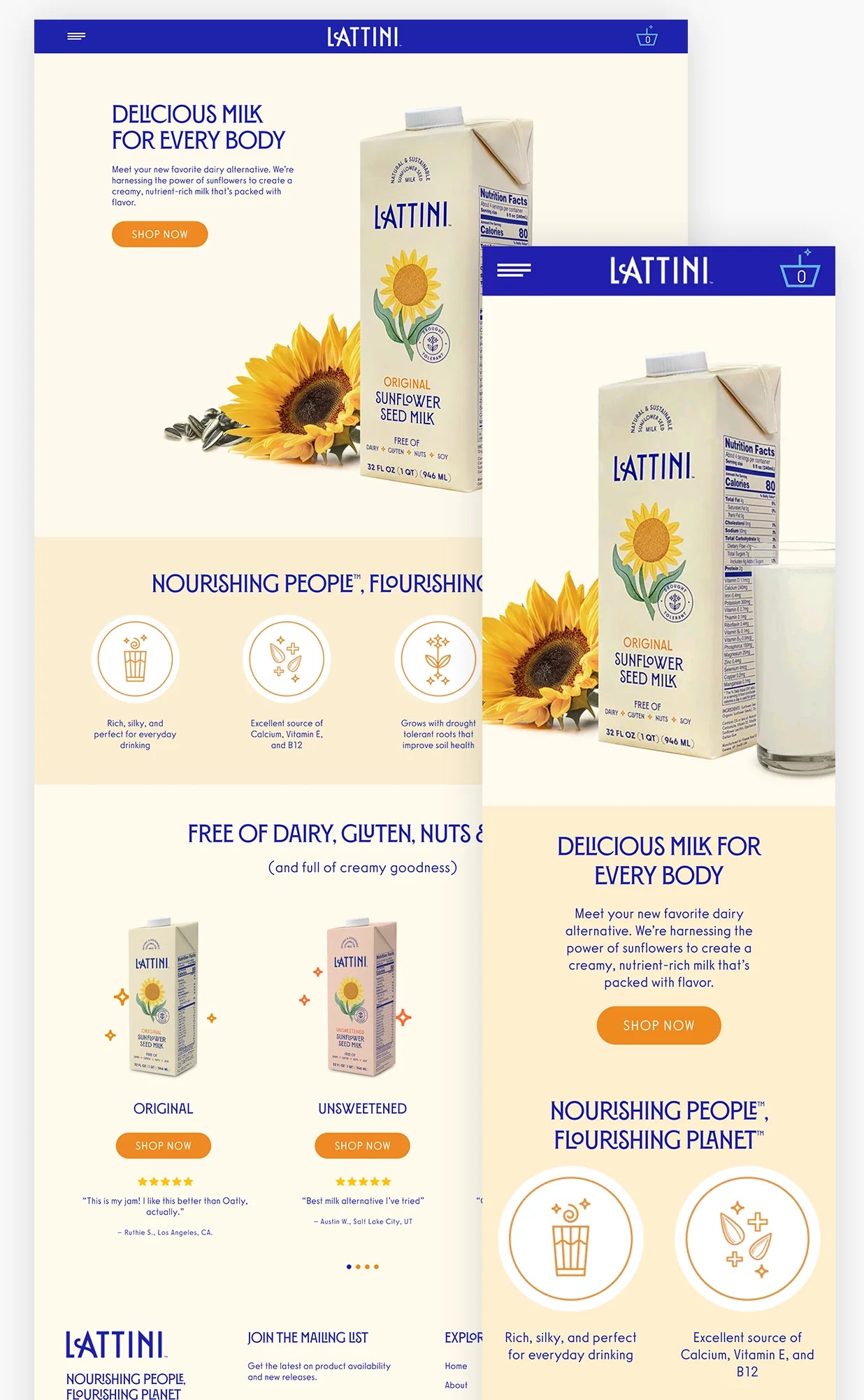Lattini's old website was dated and uninviting. Potential customers had to scroll through a ton of content just to get to the products, which wasn't very effective for sales. The design was also not reflective of the brand's values or mission—it lacked vibrancy and didn't reflect the freshness of its product.
