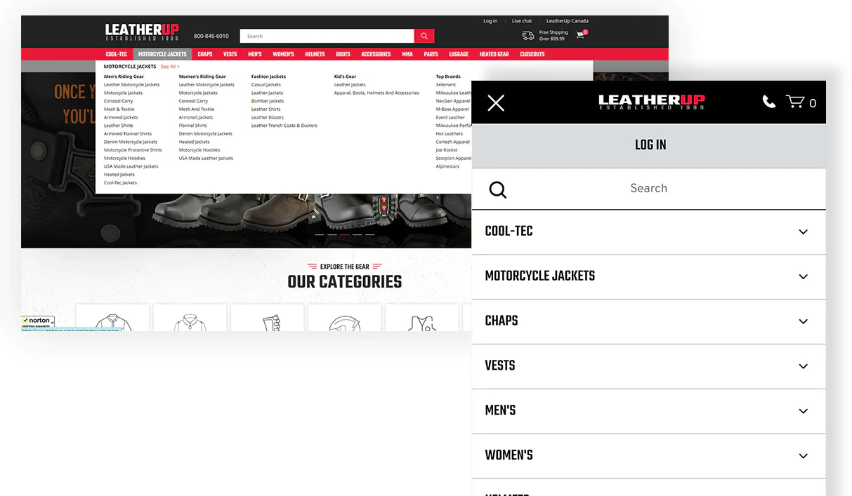 LeatherUp is a leading online retailer of leather motorcycle gear and accessories. They are the world's largest online retailer of motorcycle clothing, boots, helmets, gloves and more.They were interested in redesigning their website navigation because they felt that it wasn't intuitive enough for their customers. A customer would have to spend too much time searching for a specific product or category on the website.We agreed with them that this could be improved, so we designed a new navigation system where all of their products are categorized by brand name, price range and type of product (such as gloves). This new design makes it easy for customers to find what they're looking for quickly and easily on the site.