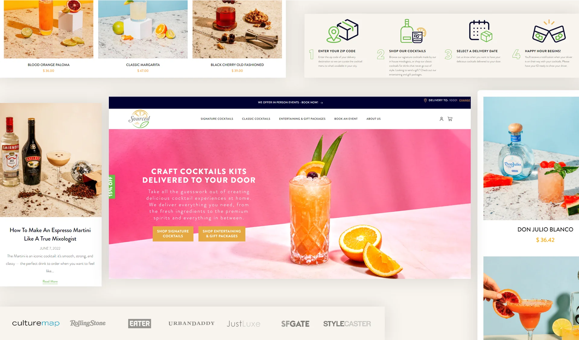 Shopify's new online store for Sourced Craft Cocktails seamlessly blends aesthetics and usability, allowing customers to effortlessly browse solutions.