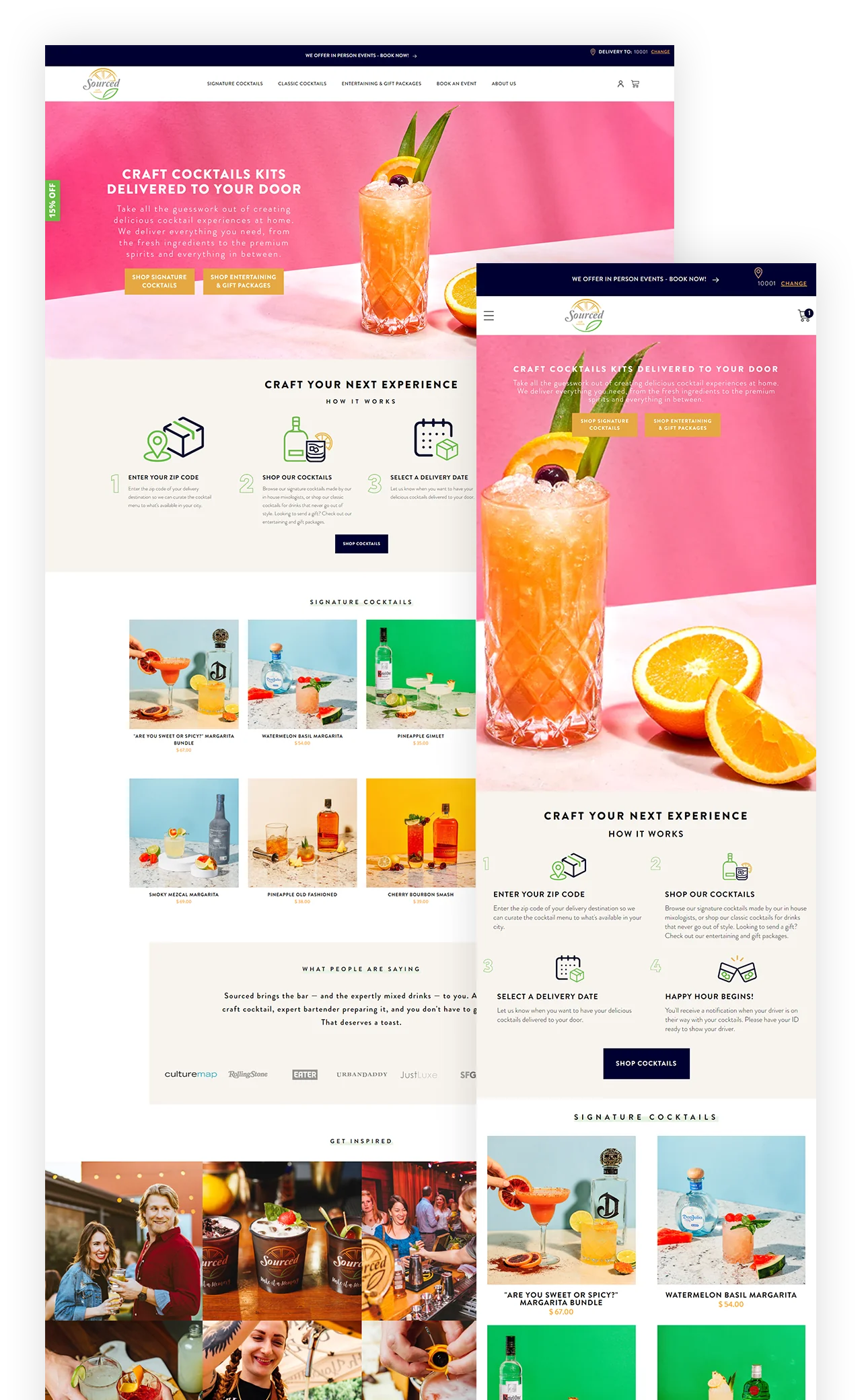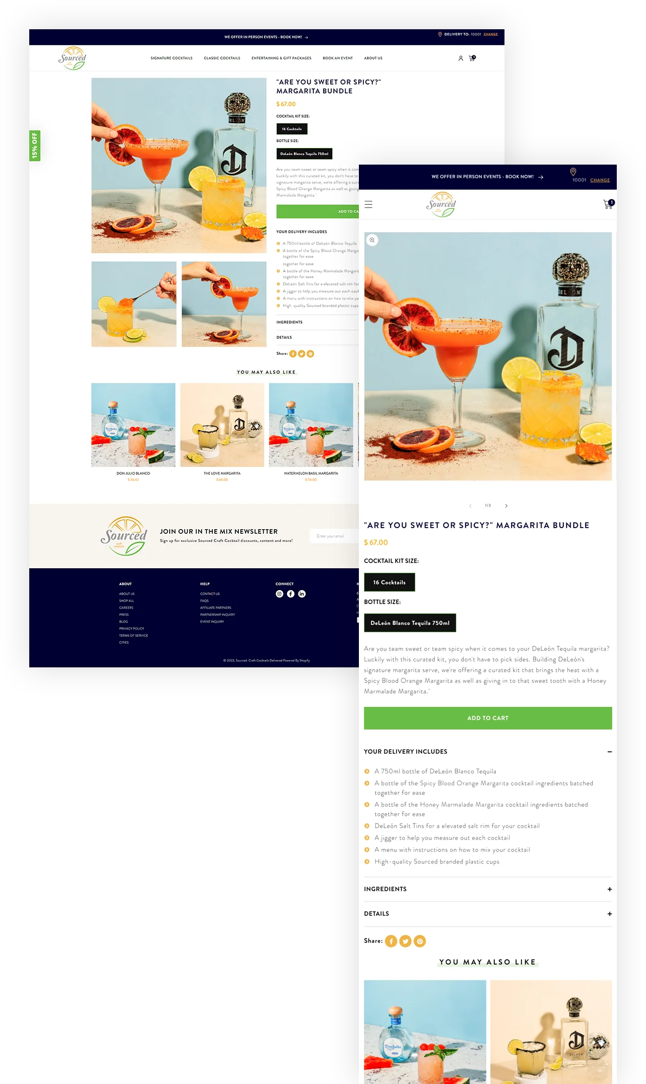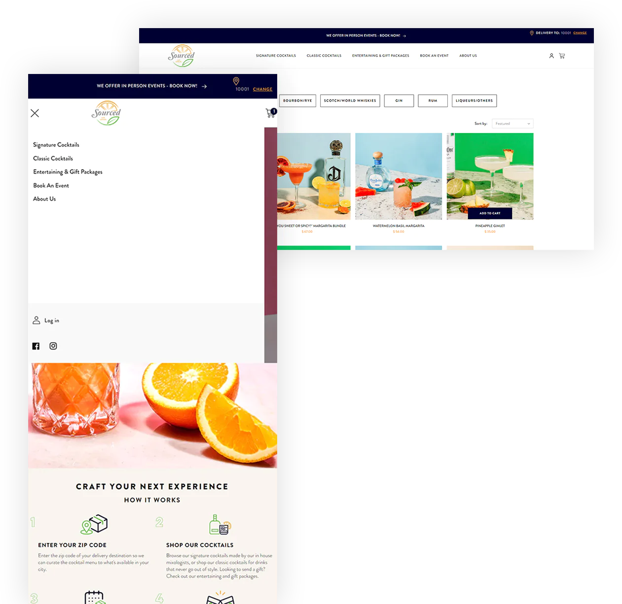 Our developers also made sure to include IP recognition capabilities, which allowed the Sourced Crafted Cocktail team to recognize their customers' IPS and recommend products based on their state and zip code.